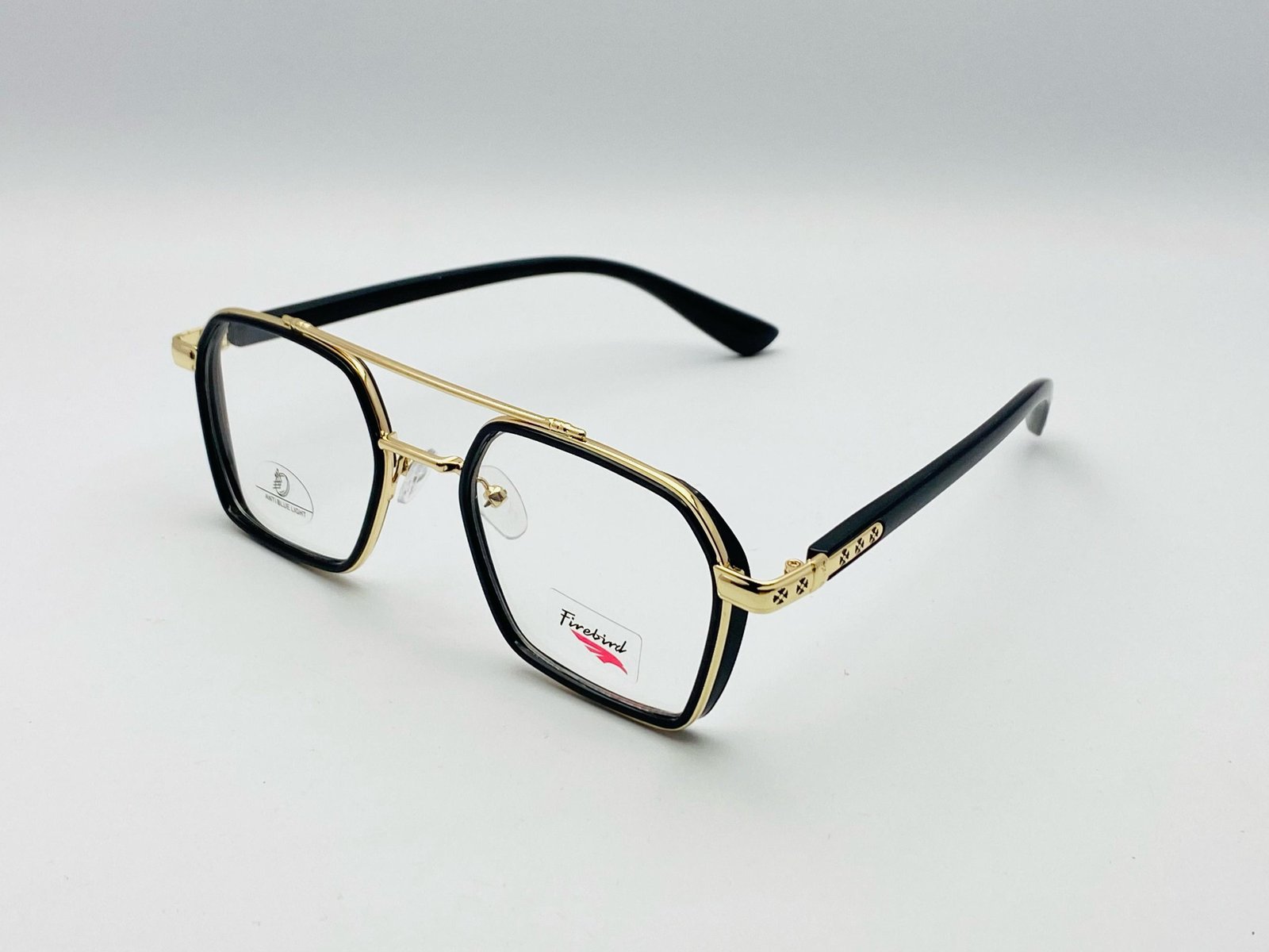 AS-038 – Unisex Polygon Eyeglasses – Black Frame With Gold Metallic Accent